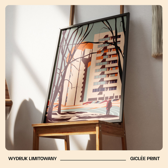 Park Sielecki to ukryta perełka Dolnego Mokotowa - kameralny, nieoblegany, a często również pusty. Cała ta sceneria kontrastuje z betonowym kolosem, tzw. Szpiegowem. I chyba właśnie ten kontrast był najciekawszy do pokazania na ilustracji.
